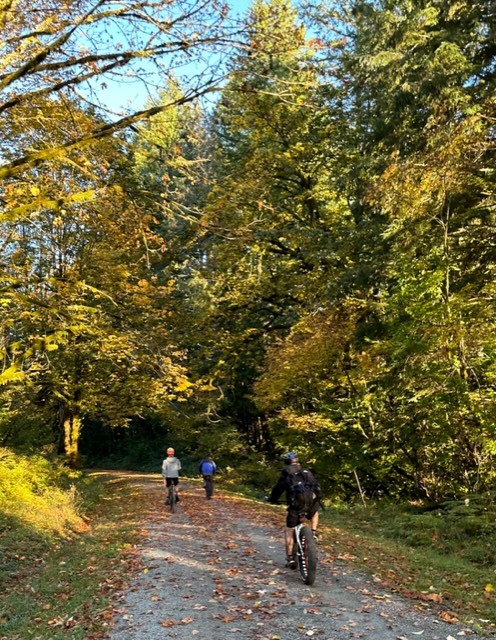 The weather cooperated perfectly this year for our Seattle and Bellevue branches annual bike ride down the John Wayne trail from Hyak to North Bend. The ride which starts with a 2-mile stretch thru an old train tunnel and continues for another 23 miles to North Bend over elevated bridges, past creeks and beautiful waterfalls. As you can see in the pictures the colors were on display and the warm temperatures made for perfect conditions! Be sure to join us next year when we do this again in Mid-October to capture the Fall colors at their best!