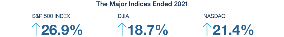 We were able to celebrate the equity markets surge to new heights at year-end with the Dow Jones Industrial Average ending the year up 18.7 percent, the S&P 500 up 26.9 percent, and the NASDAQ up 21.4 percent. As we look ahead, we are faced with increasing inflation and the surety of increased interest rates as the Federal Reserve ends its purchase of bonds, allows run-off from its holdings and increases nominal interest rates in an attempt to control price increases going forward. Recent excessive demand, combined with restrictive supply chains and a limited return to work despite large numbers of available jobs and rising wages have led us to the highest inflation in over 40 years.
