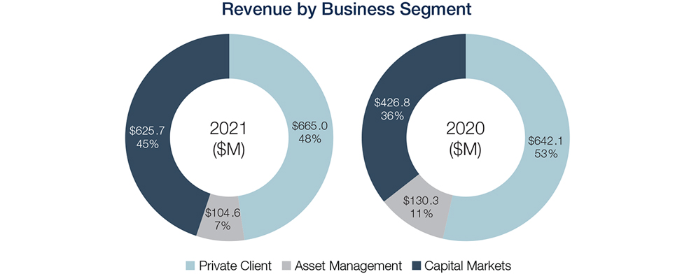 - $102.2 million in fixed income revenues, a 4.8 percent decrease compared to 2020. However, we reached the highest level of municipal underwriting in our history