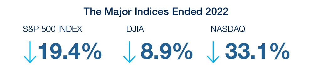 During 2022, we entered a downbeat year in which S&P 500 returns (S&P 500 declined 19.4%, the DJIA was down 8.9%, the NASDAQ declined 33.1%) ranked with the ugliest years of the Great Depression, the financial crisis of 2008, and the dot-com bust. What made 2022 even more painful for investors is that bonds, which traditionally do well whenever stocks suffer, experienced their worst showing in market history, with Fed Funds increasing 450 basis points in just a few months. Thus, the past year delivered a confluence of economic, monetary, and geopolitical factors that directly impacted our company and our clients.