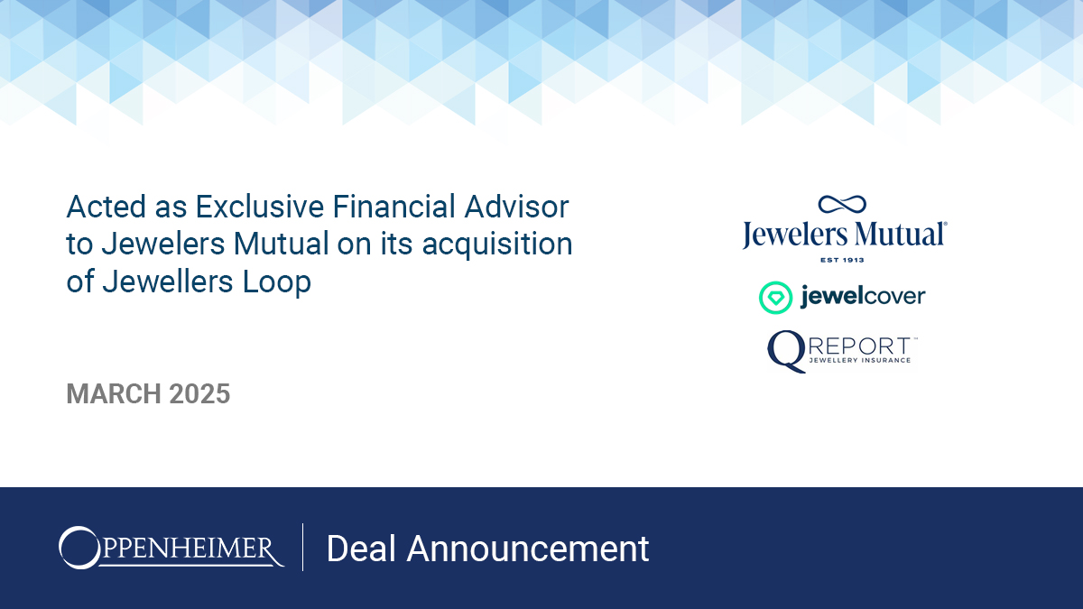 GoldenBridge acted as Exclusive Financial Advisor to Jewelers Mutual on its acquisition of Jewellers Loop